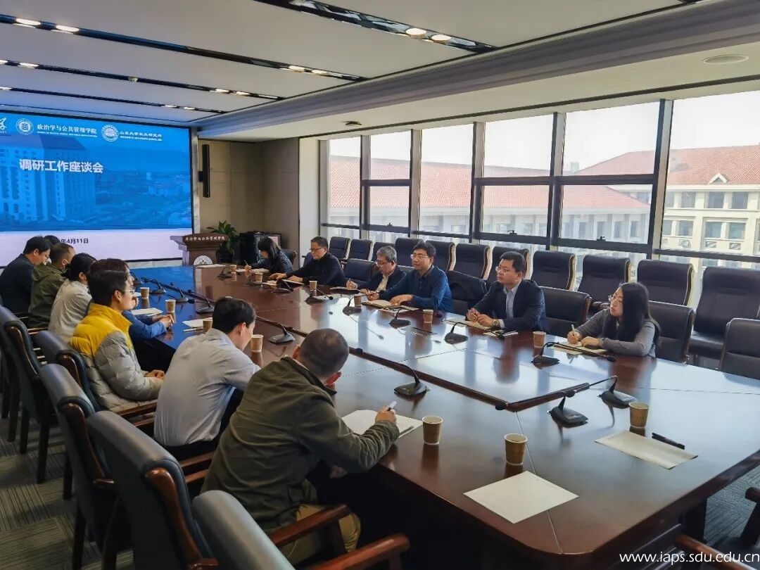 4月11日下午,山东大学校长助理、青岛校区党工委书记邢占军一行到政治学与公共管理学院亚太研究所调研指导工作,并就亚太研究所的智库建设、国际交流合作、青年团队建设等问题进行调研。山东大学青岛校区科研管理办公室副主任、人文社科研究院副院长张东鹏、青岛校区党工委(校长)办公室副主任朱继磊、国际事务部项目官员苏畅等陪同调研座谈。政治学与公共管理学院副院长朱贵昌、亚太研究所长、副所长及各个亚太研究中心正副主任参加座谈会。