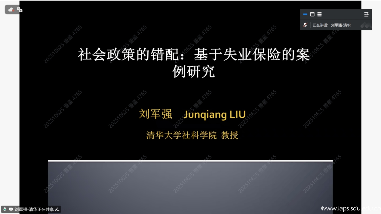 2025年10月18日晚,由山东大学政治学与公共管理学院、山东大学亚太研究所主办,亚太所亚太国家社会与人文研究中心承办的“社科与人文”系列讲座第三十七讲在线上成功举办,讲座题目为“社会政策的错配——基于失业保险的案例研究”。本次讲座由清华大学社会学系长聘教授刘军强主讲,亚太所副所长钟诚副教授主持,中国社会科学院社会学研究所梁晨副研究员、亚太所亚太国家社会与人文研究中心主任黄春蕾教授担任与谈人。